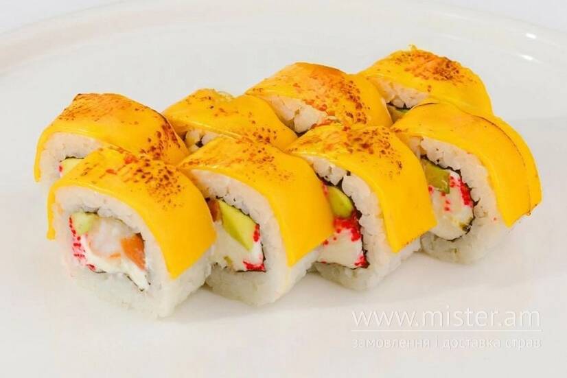 Ніжний рол із соковитим лососем, тигровими креветками та подвійною порцією сиру — класичний Філадельфія та пікантний чеддер. Додаємо свіжий огірок, ароматний унагі соус та загортаємо в норі з рисом.