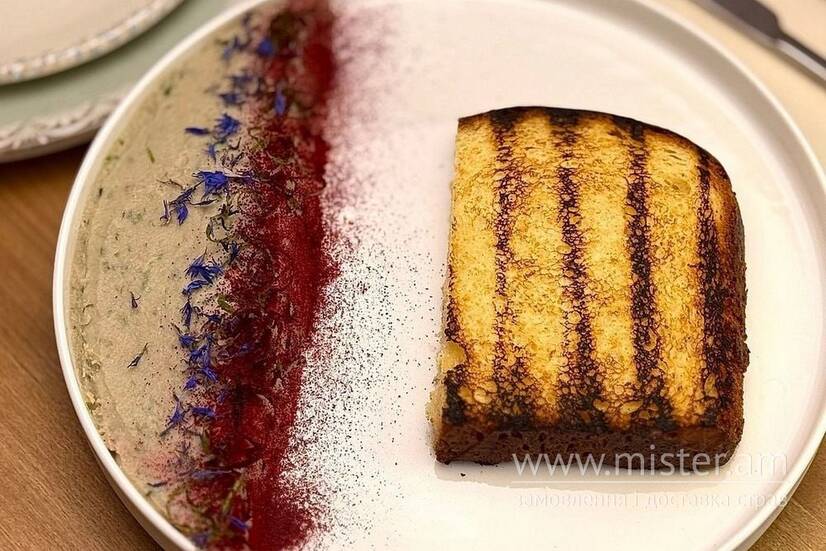 Форшмак з оселедця з підсмаженою булочкою сайка.