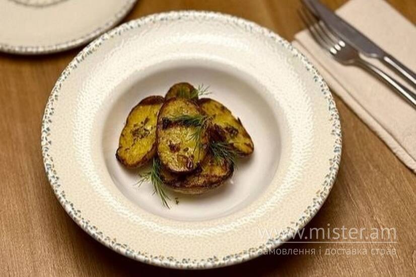 Печена картопля в хоспері с зеленню та часниковою олією.