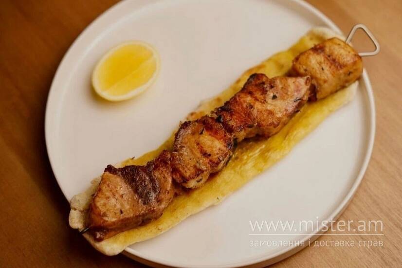Філе срібного коропа в авторському маринаді. Соковите філе срібного коропа, мариноване за фірмовим рецептом з додаванням цибулі та запечене в хоспері. Має насичений аромат і виразний смак. Особливість страви — у м’ясі присутні дрібні кісточки