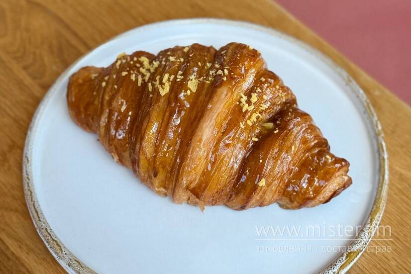 Круасан, абрикосове кюлі, міралюкс маракуйя, ніжний крем, свіжий абрикос.