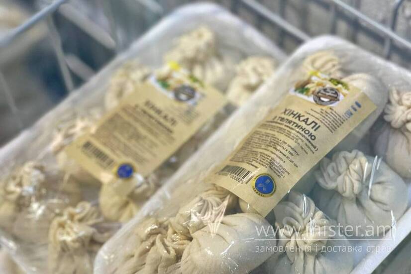 Борошно пшеничне вищого сорту, телятина знежилована напівжирна, вода питна, цибуля ріпчаста, кінза свіжа, кріп свіжий, петрушка свіжа, крохмаль картопляний, сіль кухонна, перець чорний мелений, перець червоний мелений, спеція уцхо-сунелі.