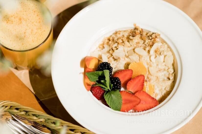 Хмільне М'ясо Вівсяна каша на молоці з сезонними фруктами/ягодами