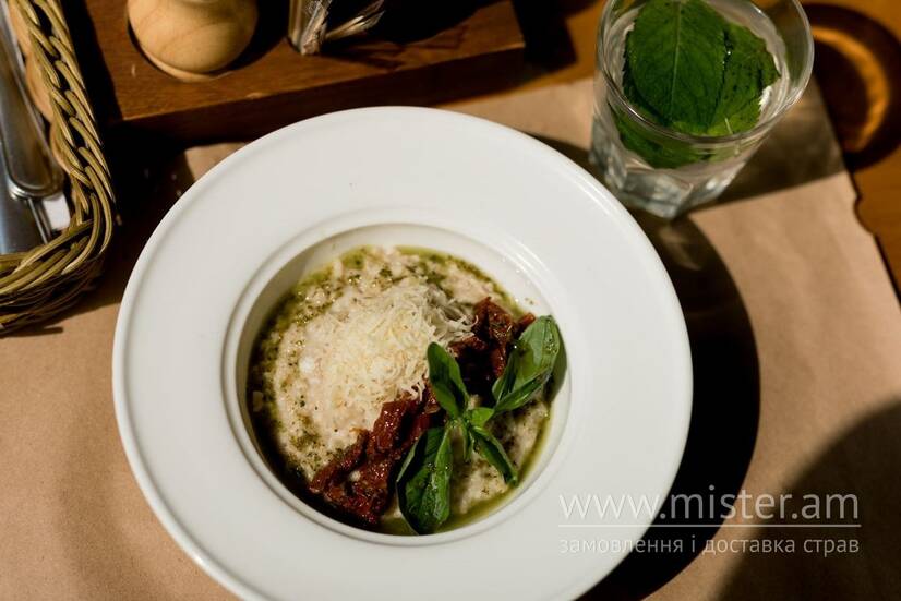 Хмільне М'ясо Вівсяна каша з в'яленими томатами, яйцем Бенедикт та сиром пармезан