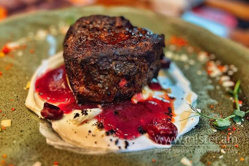 Хмільне М'ясо Філе Міньон з вишнево-винним соусом