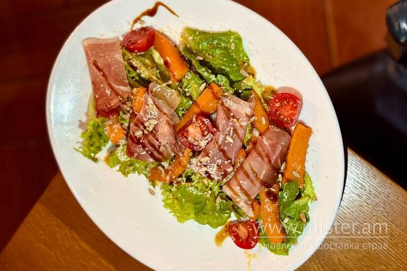 Хмільне М'ясо Салат з карамелізованим гарбузом та прошуто
