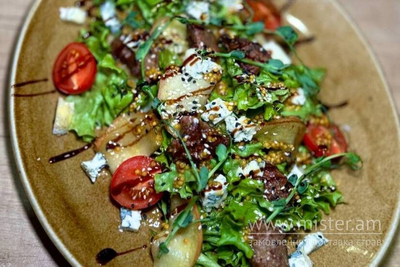 Хмільне М'ясо Салат з карамелізованою печінкою