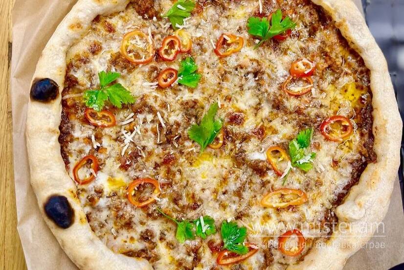 Традиційна італійська піца з соковитим м’ясним соусом Болоньєзе, ніжною моцарелою та пікантним перцем Чілі. Тонке тісто, випечене до ідеальної хрусткої скоринки. Ідеальний вибір для поціновувачів насичених м’ясних смаків.