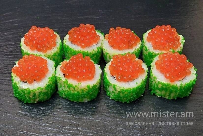Рис, норі, крем-сир, огірок, ікра кети імітація (не білкова).