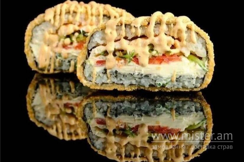 Вугор, масаго, соус унагі, огірок, авокадо, рис, крем-сир, норі.