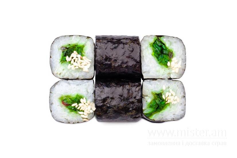 Кунжут, норі, рис, чука, васабі, імбир, соєвий соус.