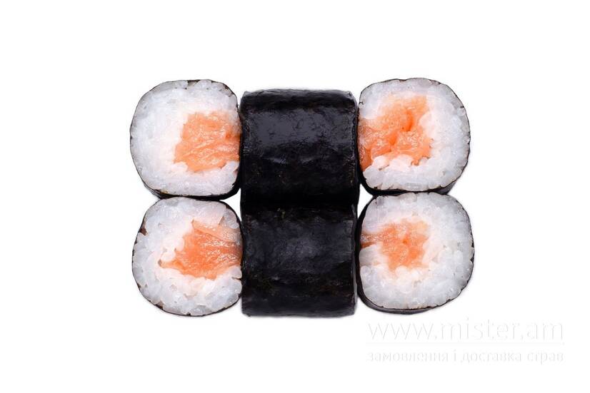 Лосось, норі, рис, васабі, імбир, соєвий соус.