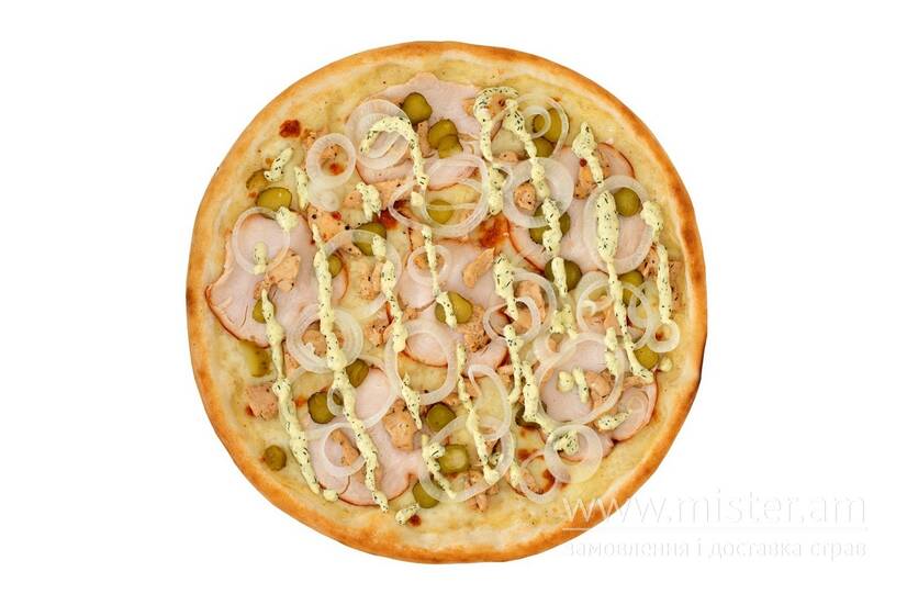 Вершки, корнішони, курка, моцарелла, рулет індичий, соус тартар, цибуля маринована.
