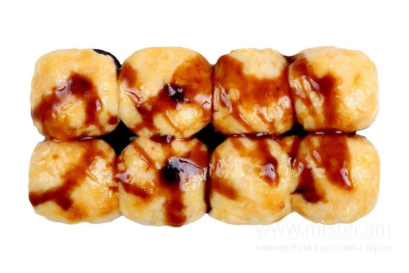 Гауда, норі, сніжний краб, соус унагі, японський майонез, васабі, імбир, соєвий соус.