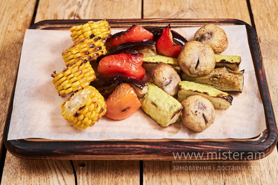 Перець болгарський, баклажан, кабачок, печериці.