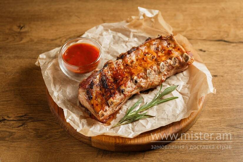 Реберця зі свинини подаємо з гострим соусом до м'яса