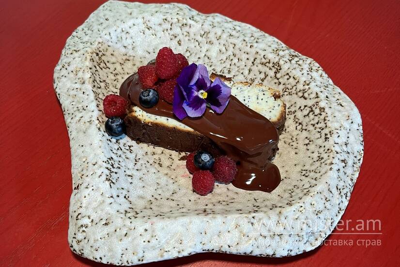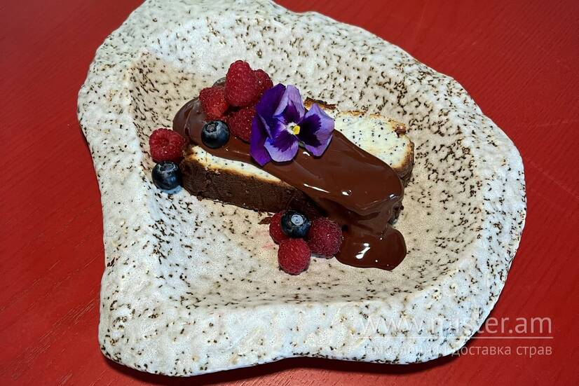 Ніжний сирний пляцок з в'яленою журавлиною, маком та шоколадним ганашем.