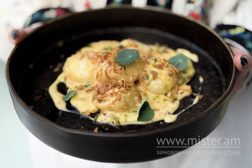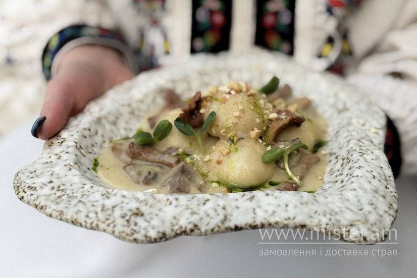 Галушки з лісовими грибами та кремом зі смаженої картоплі