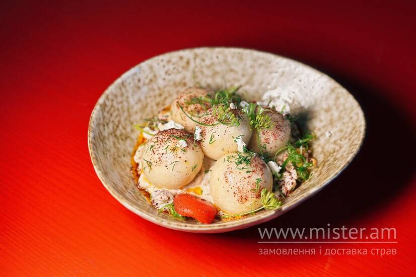 Куркулі Парові галушки з курячим жульєном та печеними томатами