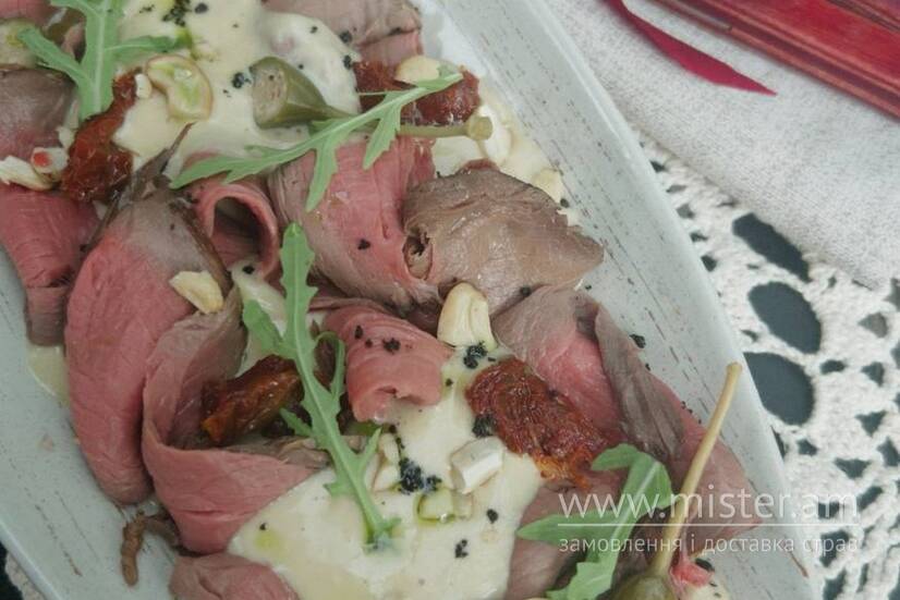 Антипасті Мезе з печеним баклажаном, перцем та свіжим огірком