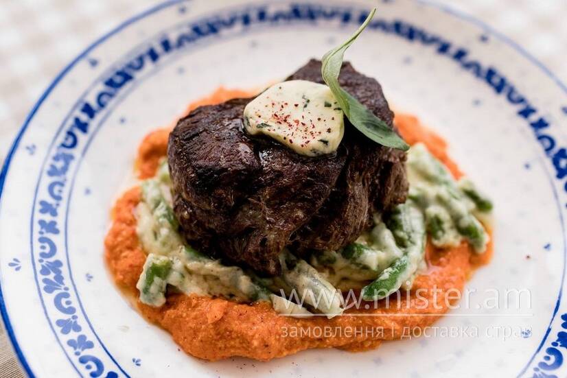 Яловича вирізка з перцевим песто