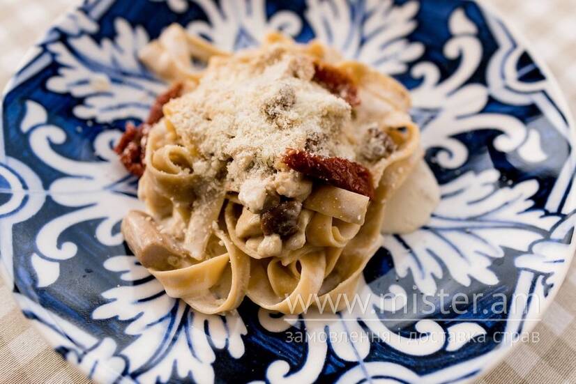 Тальятелле з куркою, білими грибами та в'яленими томатами