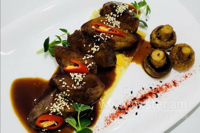 Язик запечений з соусом халопеньйо
