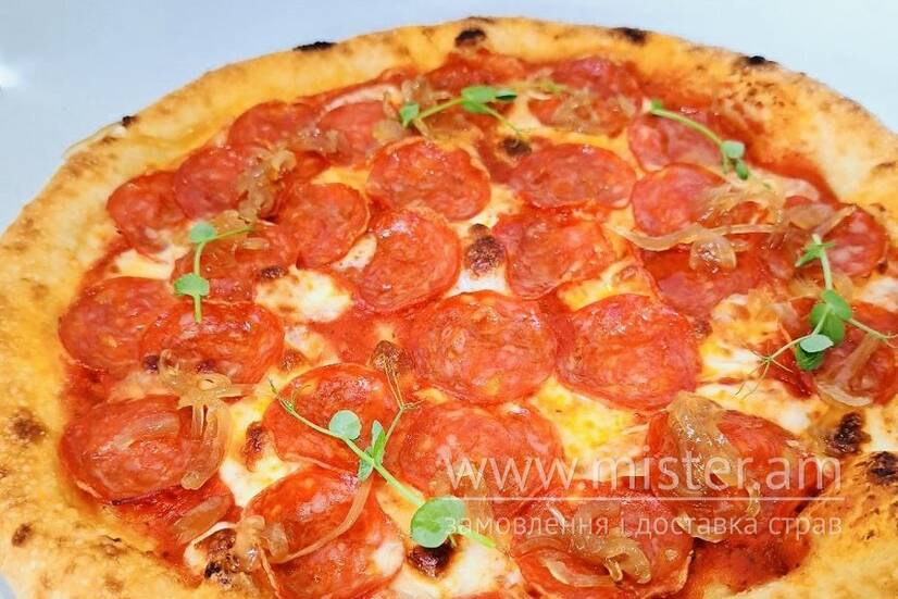 Фермерська моцарела, фірмовий соус пілаті, ковбаса "Чорізо".