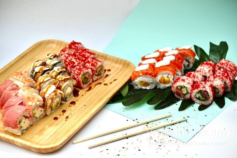 Філадельфія з вугрем де-люкс, Філадельфія з манго, Філадельфія дует з креветкою та тунцем, Каліфонія з вугрем, Каліфорнія з тунцем.