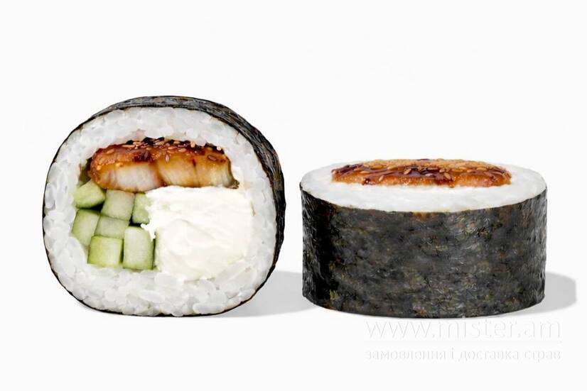 Рис, норі, крем кулінарний пастеризований, огірок свіжий, вугор.