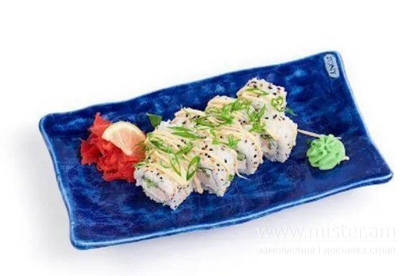 Сніжний краб, огірок, кунжут, японський майонез, пармезан.
