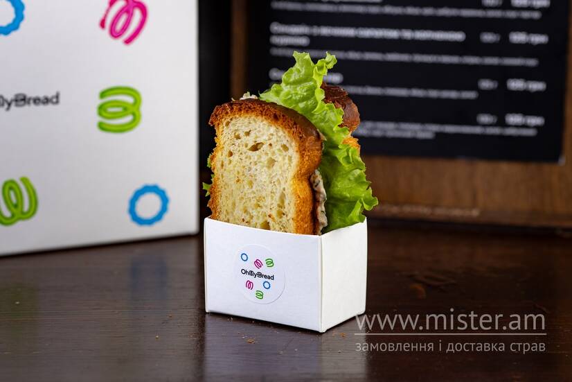 Хліб бріош, тунець консервований, огірок, помідор, цибуля червона, кріп, оливки, крем сир, салат, часник.