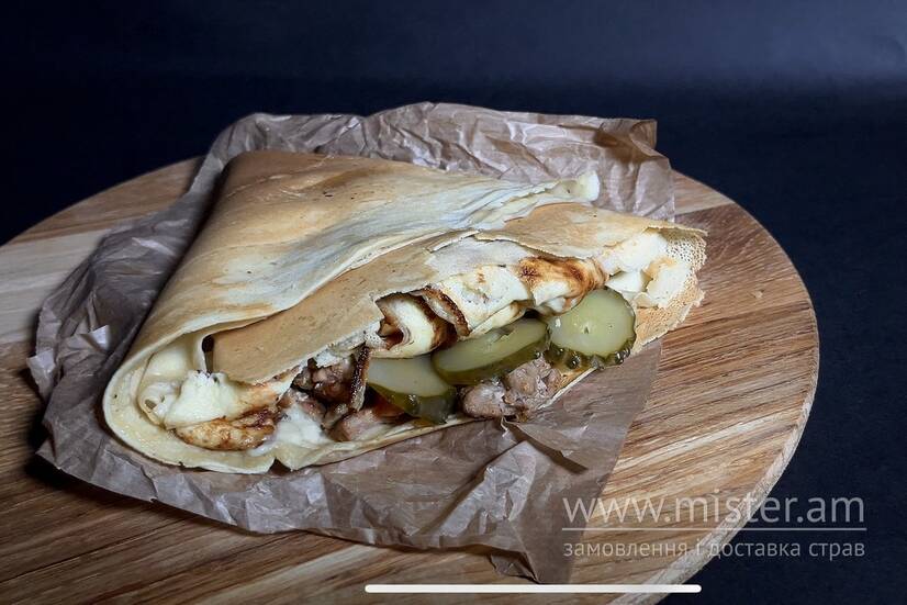 Свинина, пікулі, омлет, соуси.