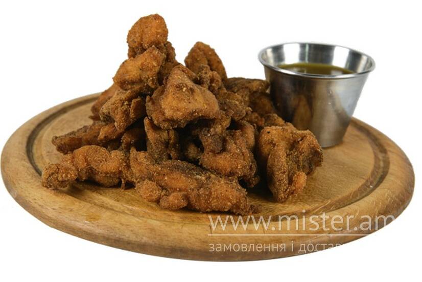 Куряче філе в паніровці, медово-гірчичний соус.
