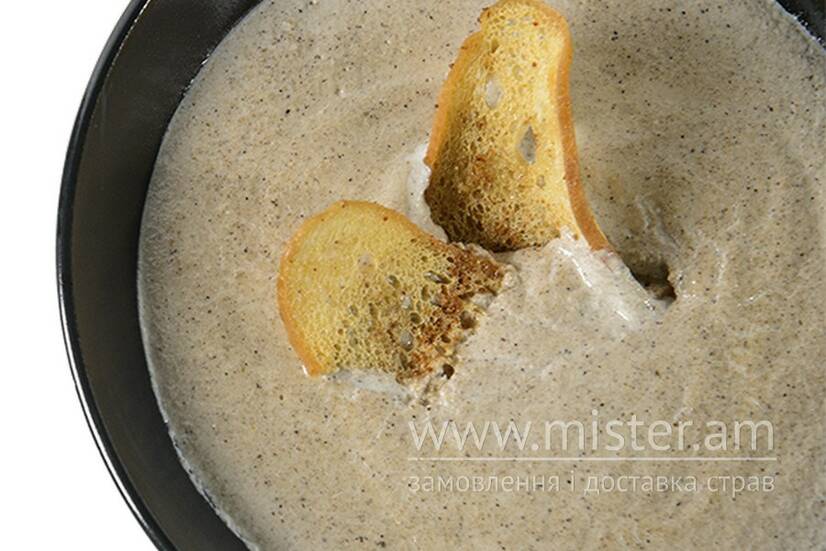 Печериці, цибуля ріпчаста, вершки, сухарики.