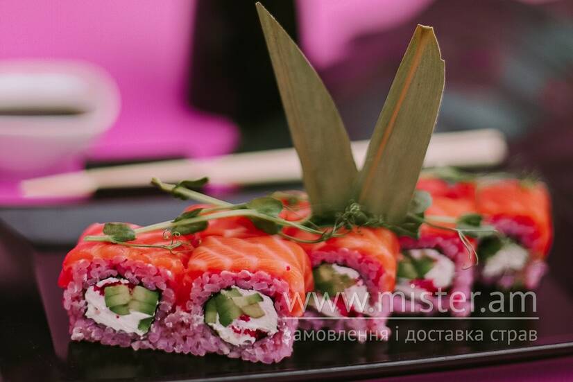 Норі, рис, крем-сир, авокадо, ікорний продукт, лосось.