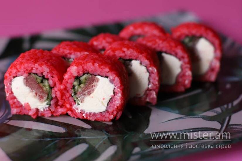 Норі, рис, крем-сир, тунець, ікра масага, огірок.