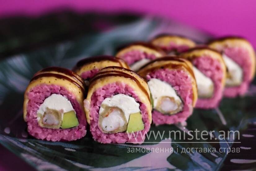Норі, рис, крем-сир, сир чеддер, тигрова креветка, авокадо, унагі.