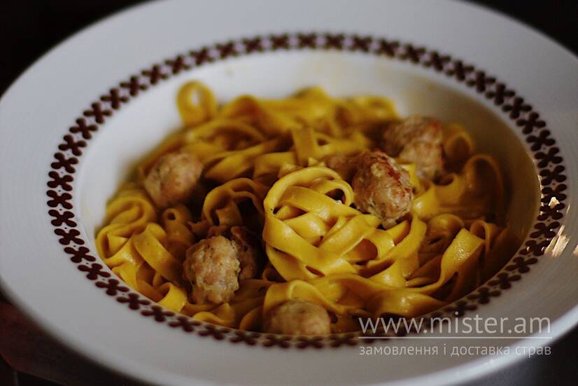 Домашня вершкова паста зі свинино-яловичими мітболами.