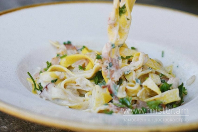 Курячий бульйон + тальятеле з шинкою та горгонзолою