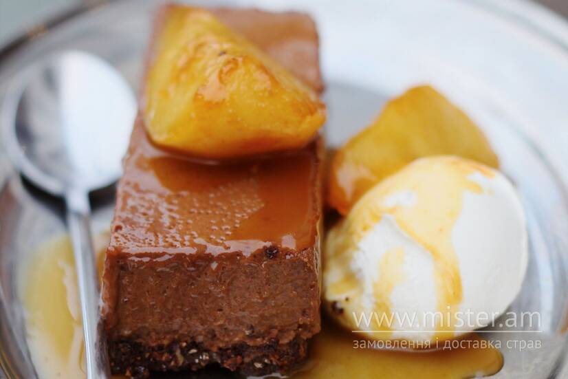 Шоколадний джандуя з томленою грушею та ніжним кремом маскарпоне