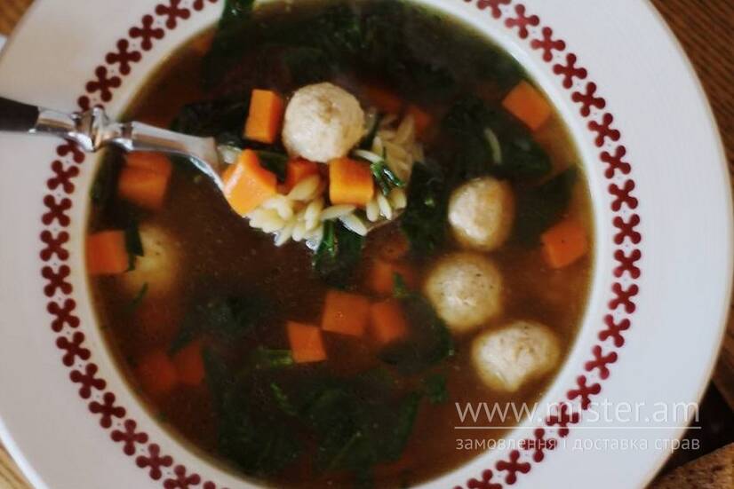 Паста Баста Площа Класичний італійський суп з фрікадельками та зеленню