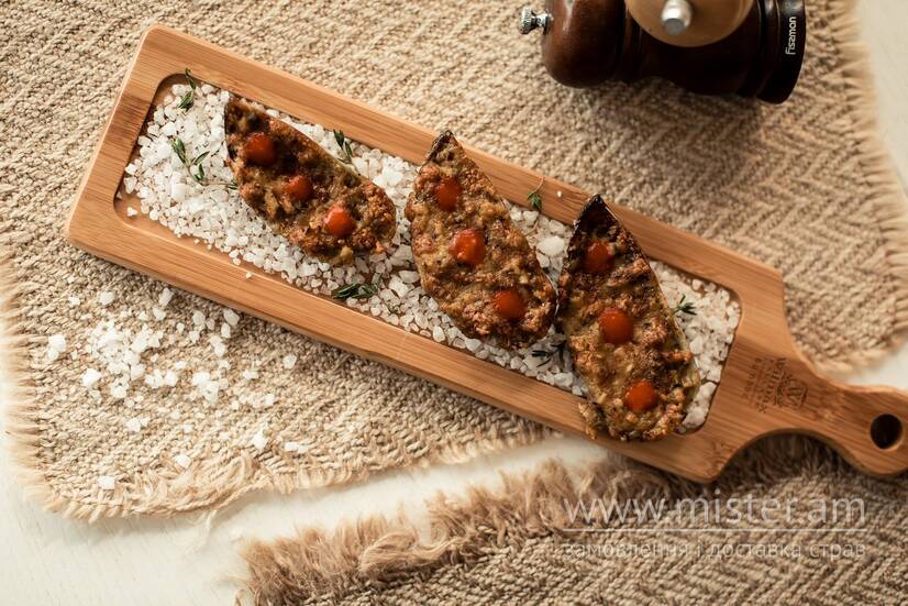 М’ясо мідії, сир твердий, майонез, часник, гострий соус.