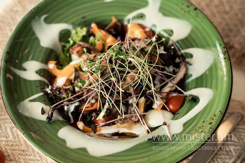 Теплий салат з телятиною та печерицями