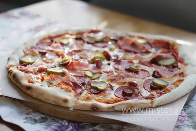 Моцарела, ковбаски, салямі, шинка, прошутто, огірки солоні.