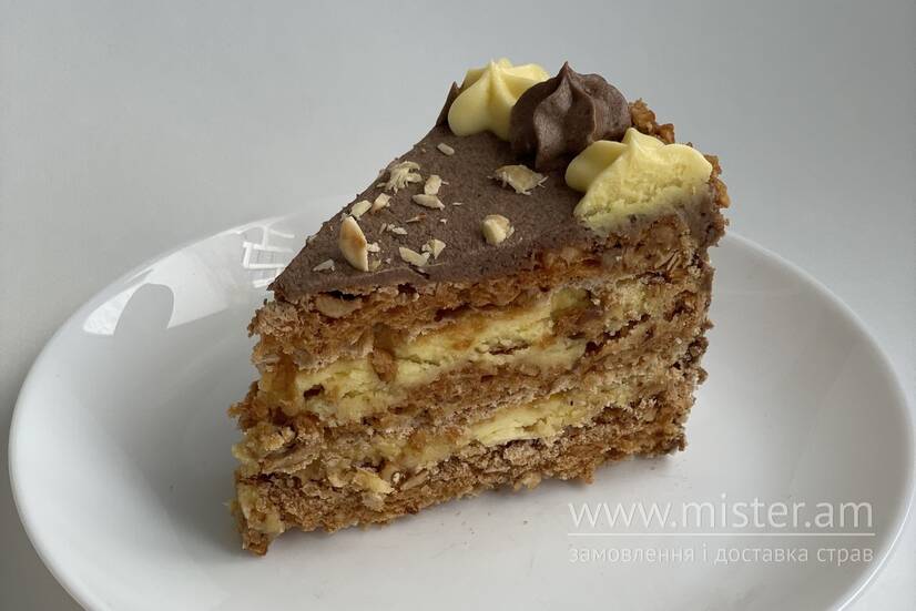 Коржі типу безе зі смаженим лісовим горіхом та кремом шалот.
