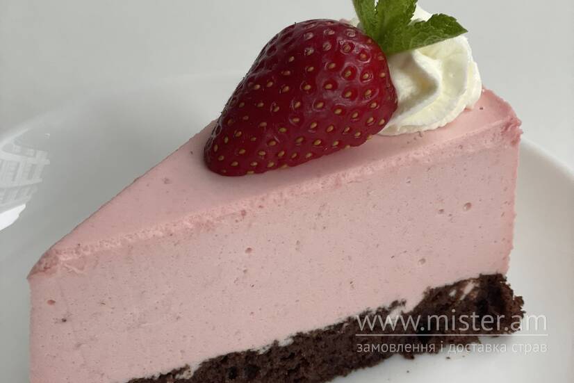 Торт на бісквітній основі з ягідно-вершковим мусом.