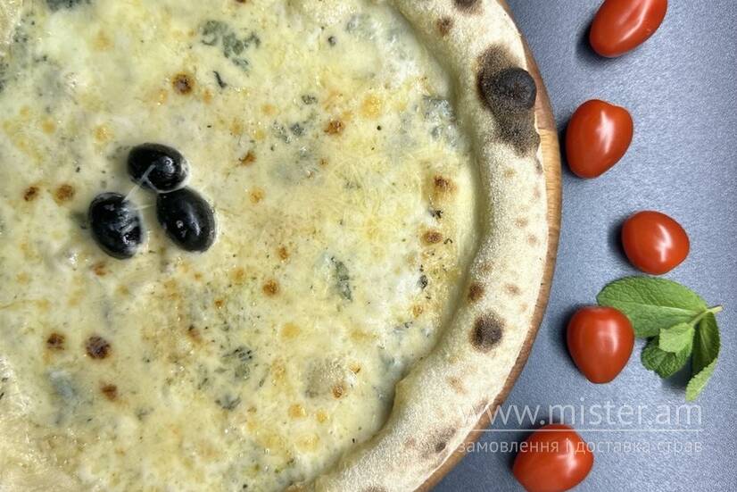 Соус вершковий, сир горгонзола, сир Дор Блю, сир пармезан, сир моцарела, маслини, соус брусничний - (йде окремо).