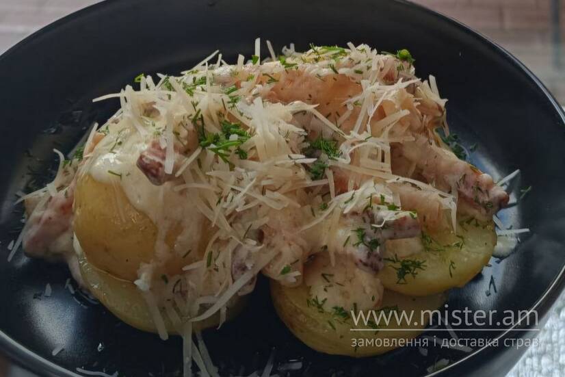 Картопелька обсмажена на вершковому маслі з додаванням моцарели та хрумкого бекона.