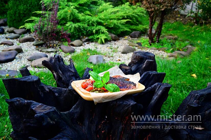 Ресторація Озеро Філе скумбрії на мангалі з овочевою подушкою